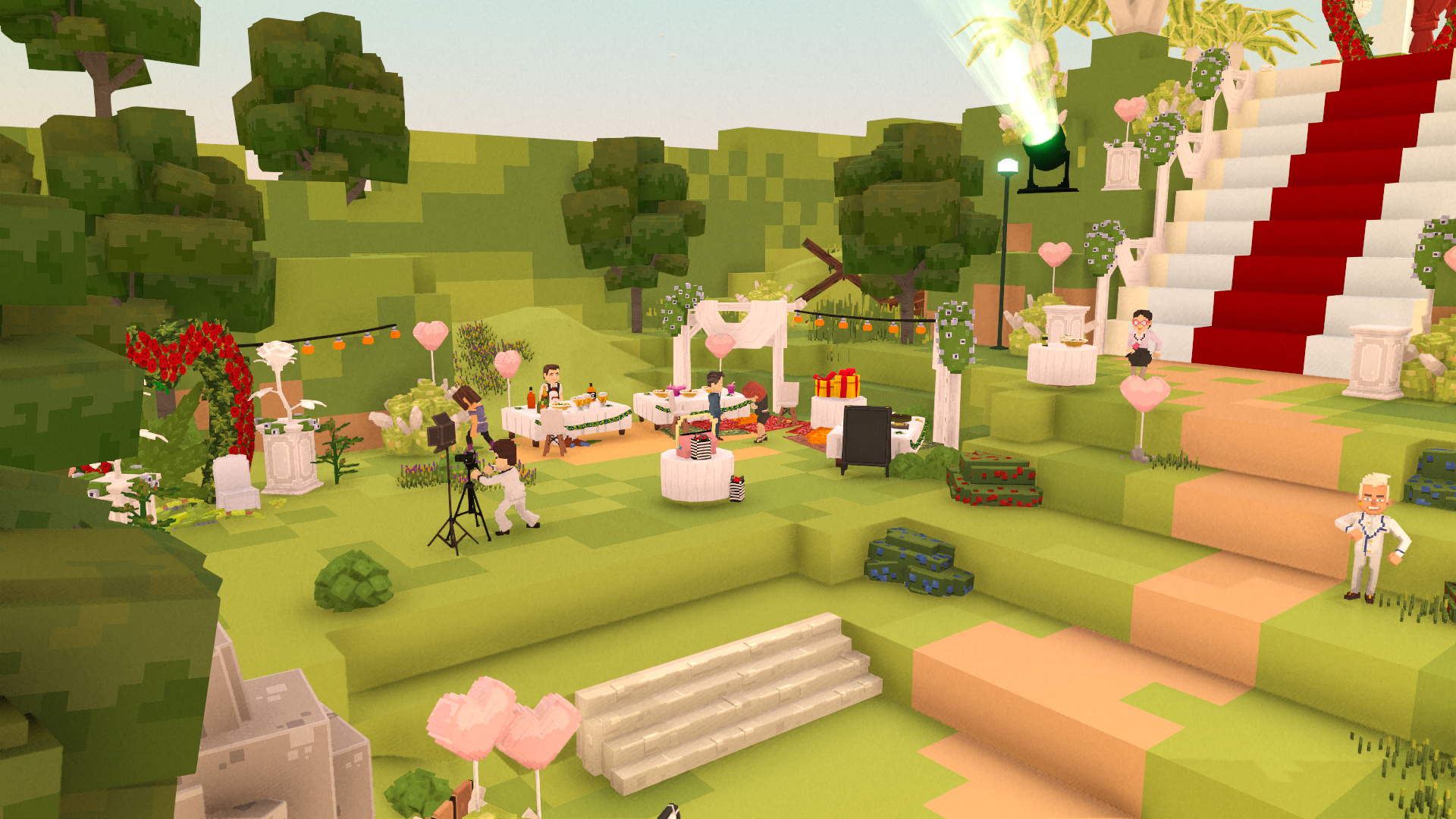 The Sandbox is an online social gaming platform. It has a strong UGC component, players being able to create various type of gameplay within their own short level, ranging from hardcore platforming, narrative horror to party-game puzzles.