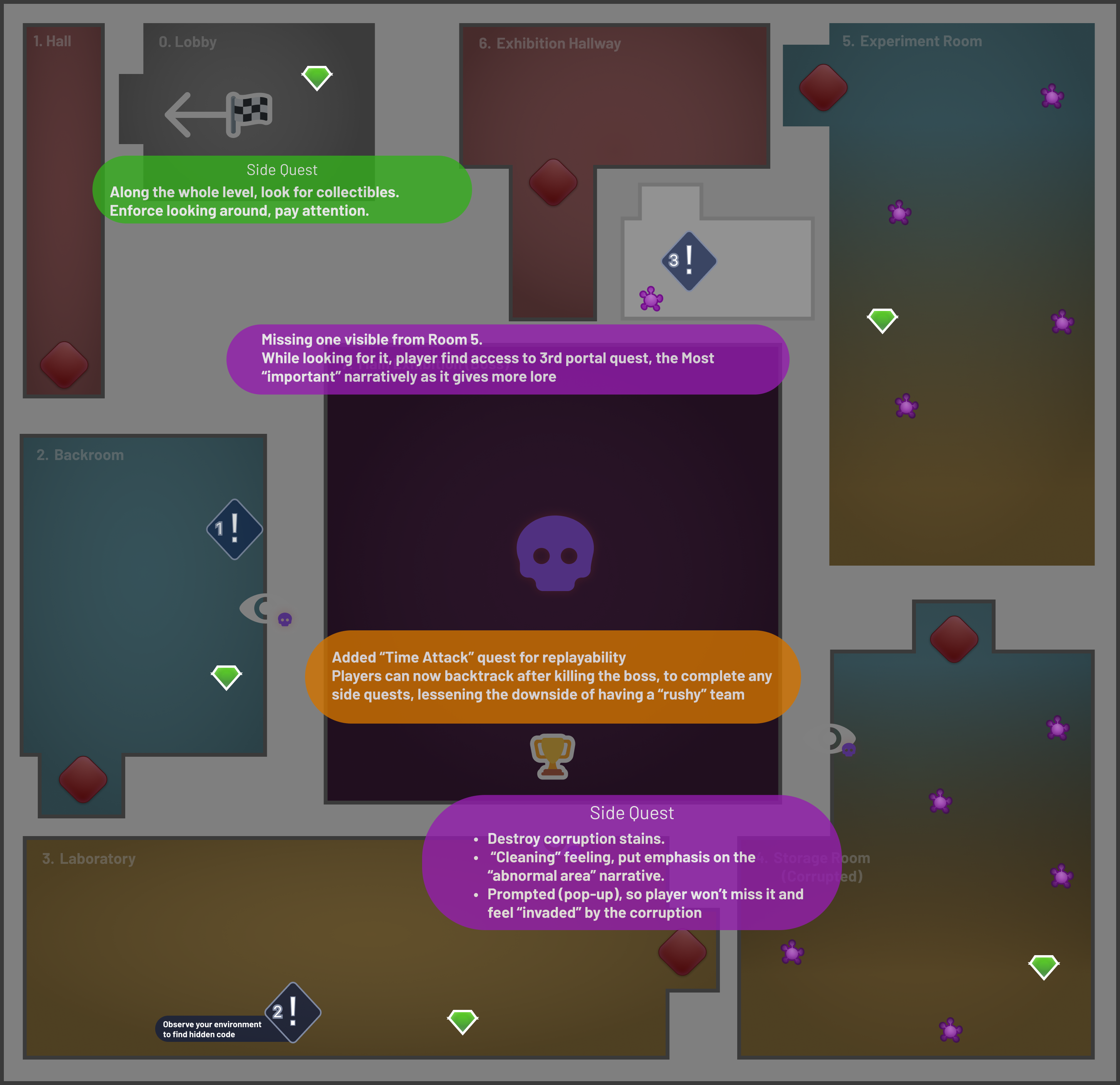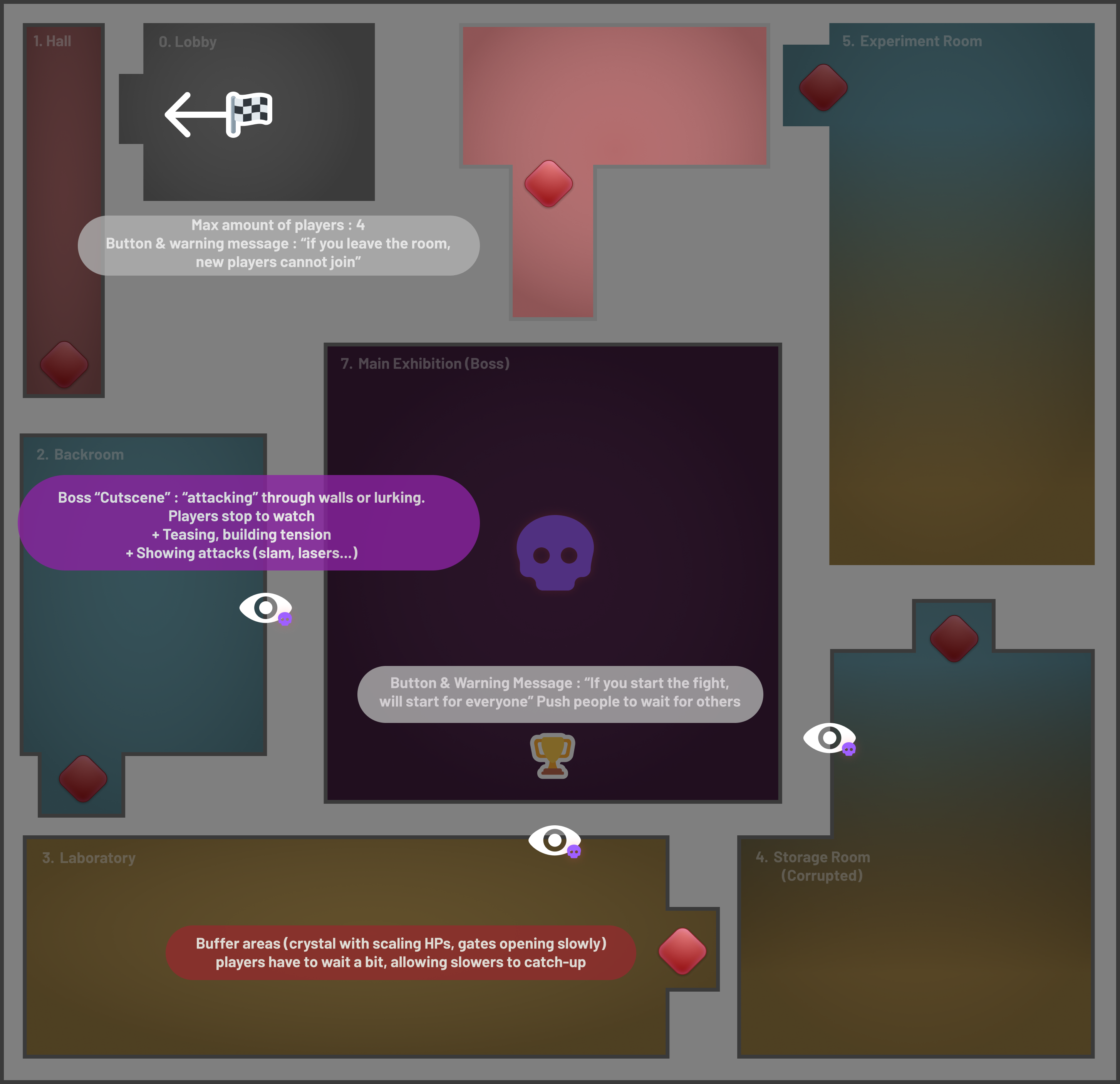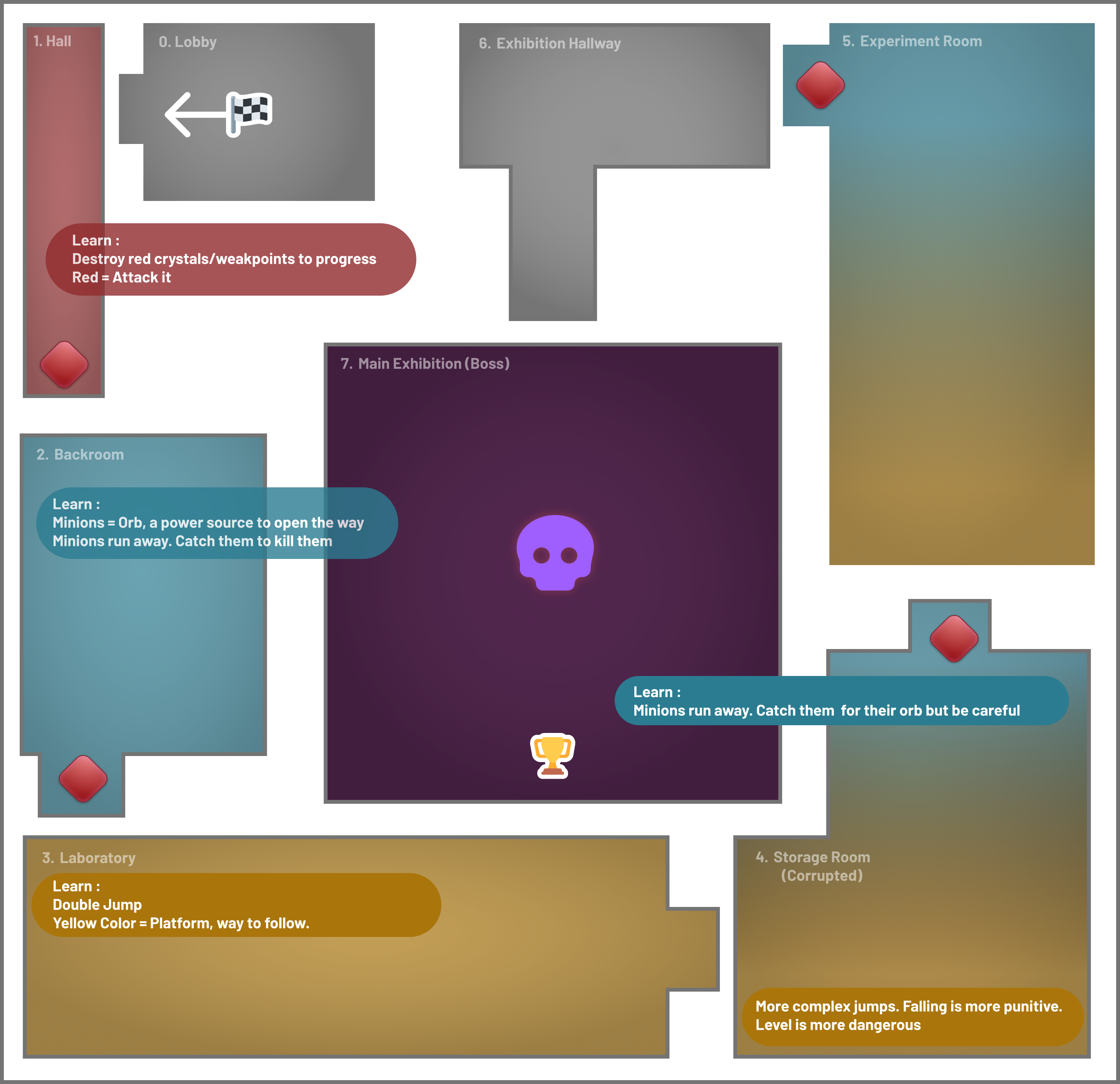 Design breakdown below focusing on the flow to ensure player understanding. Overall map visuals at the end of the page.