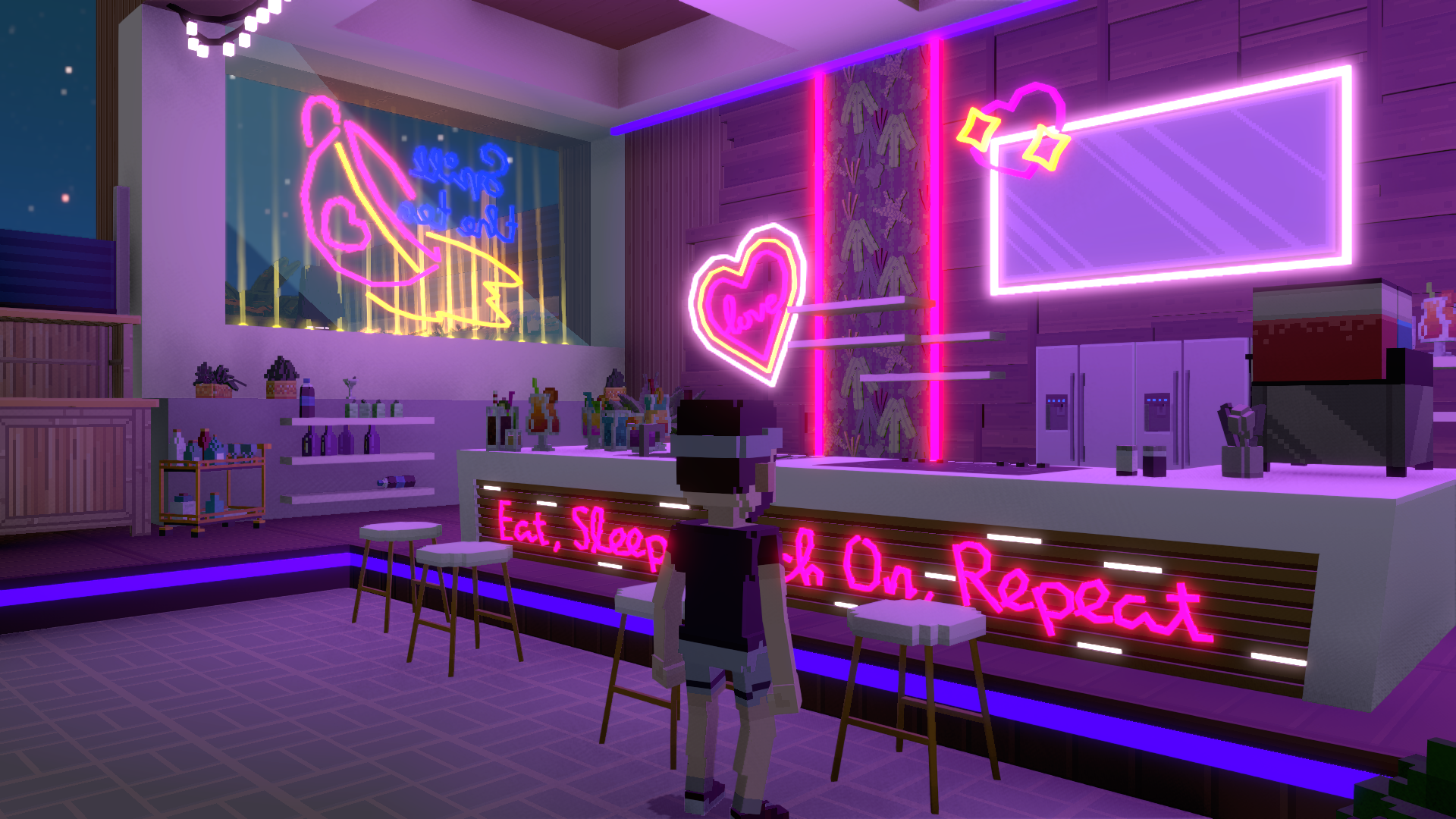 A faithful adaptation of the show’s Villa in a day & night cycle that evolves along the player’s choices.