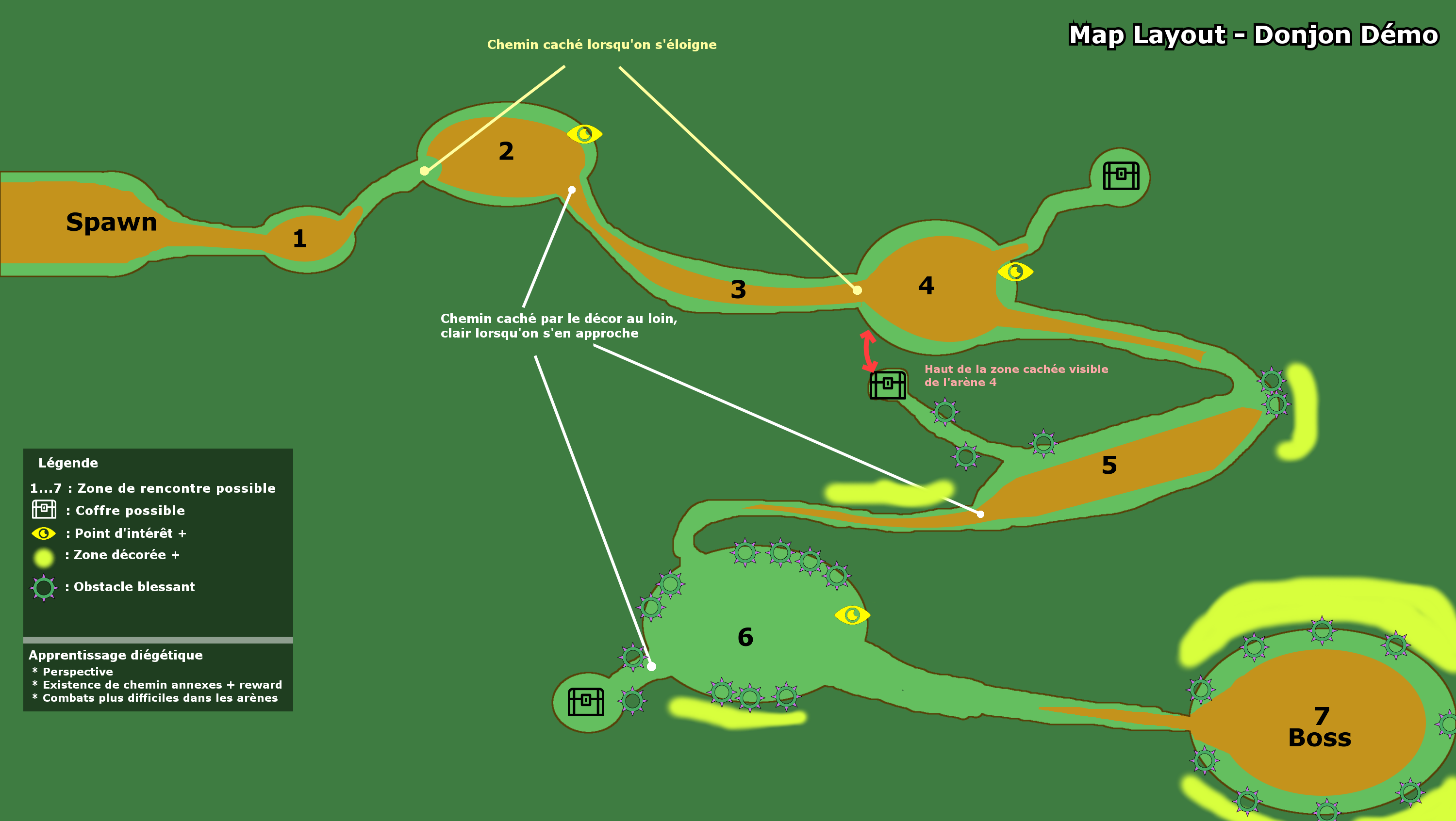 - Establishing rules and guidelines for levels, dungeon layouts and arena size regarding to gameplay restrictions.