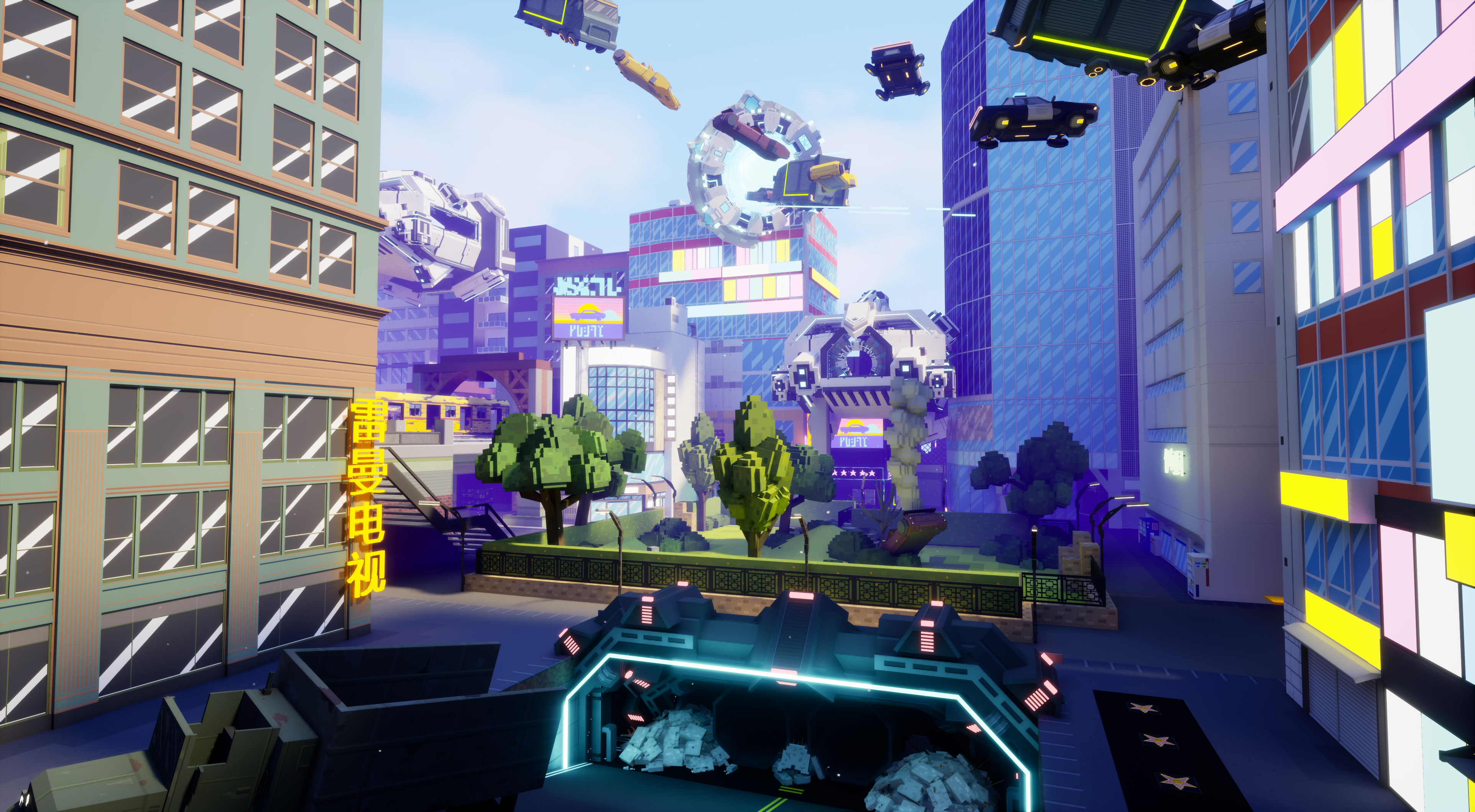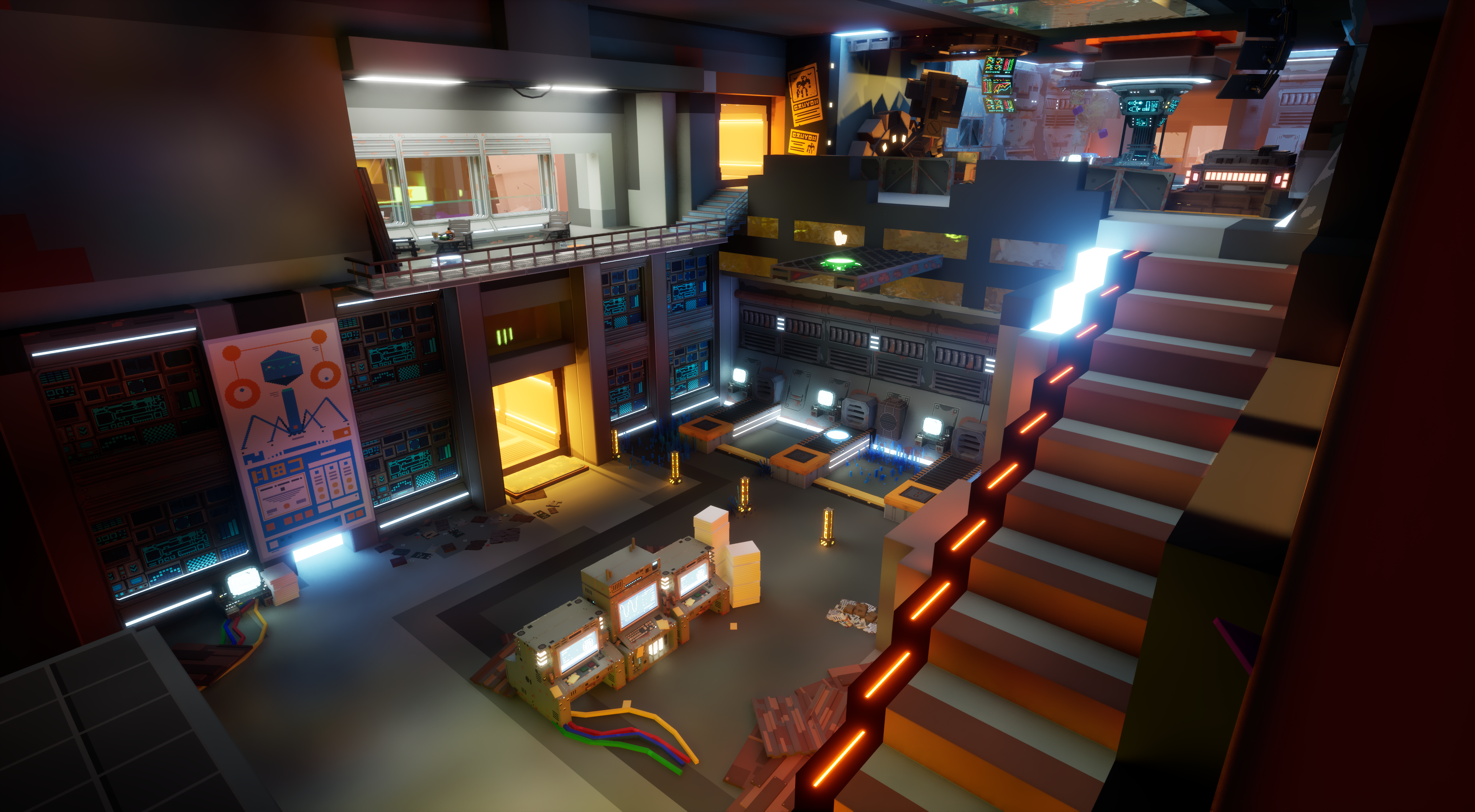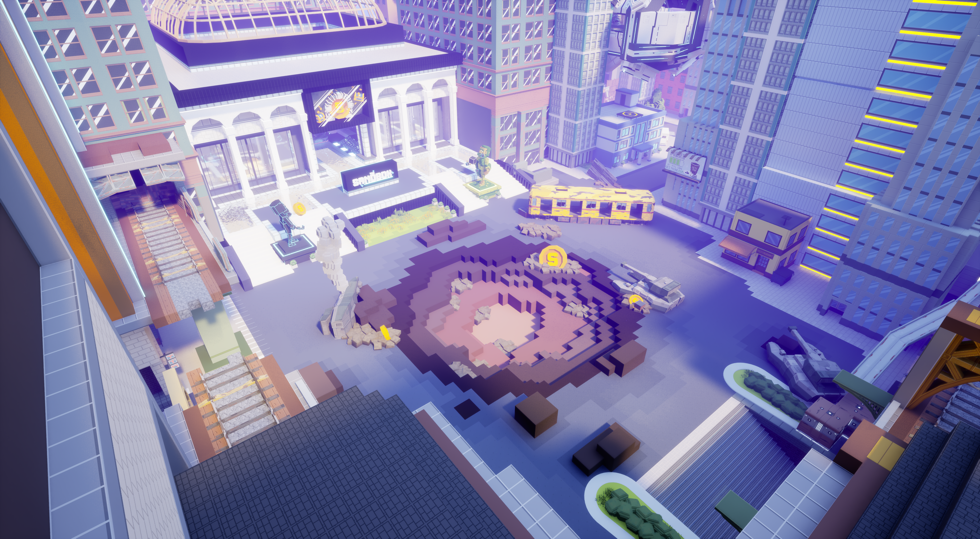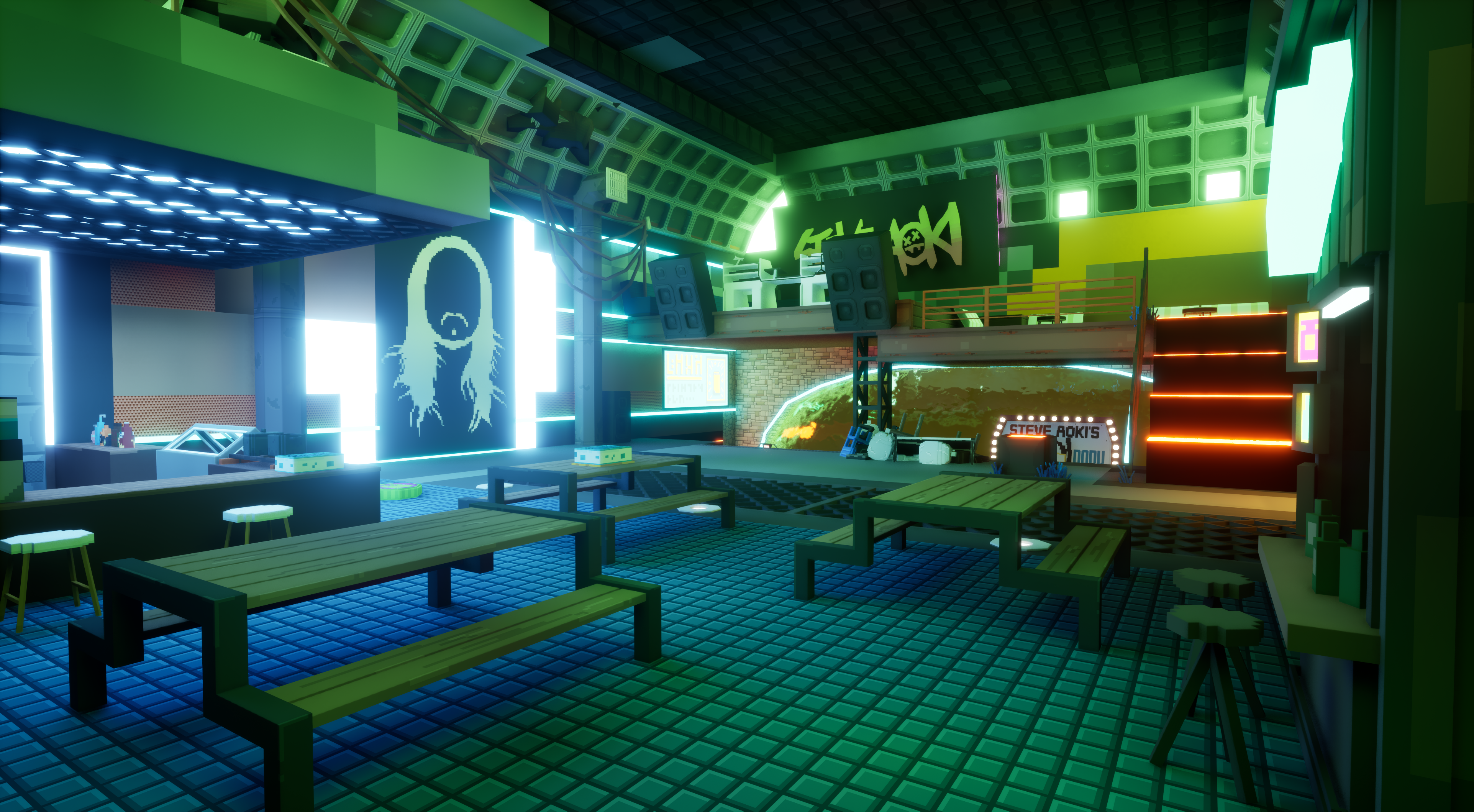 Level Design & Art – Designed around re-used locations from old levels and mixed together as a cohesive metaverse environment