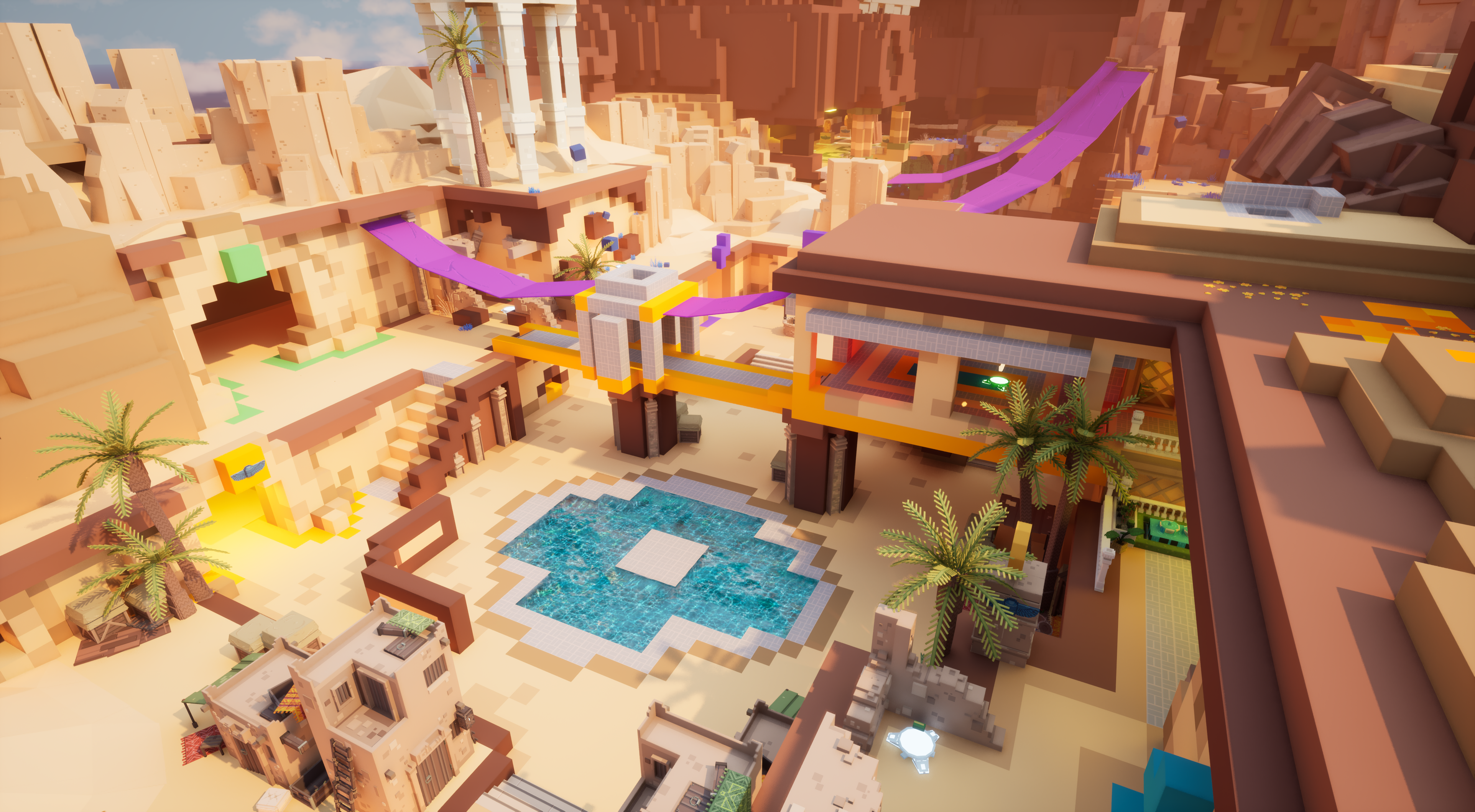 Multipurpose map designed with “open areas to wander in”, indoor areas with secret passages and a focus on verticality.